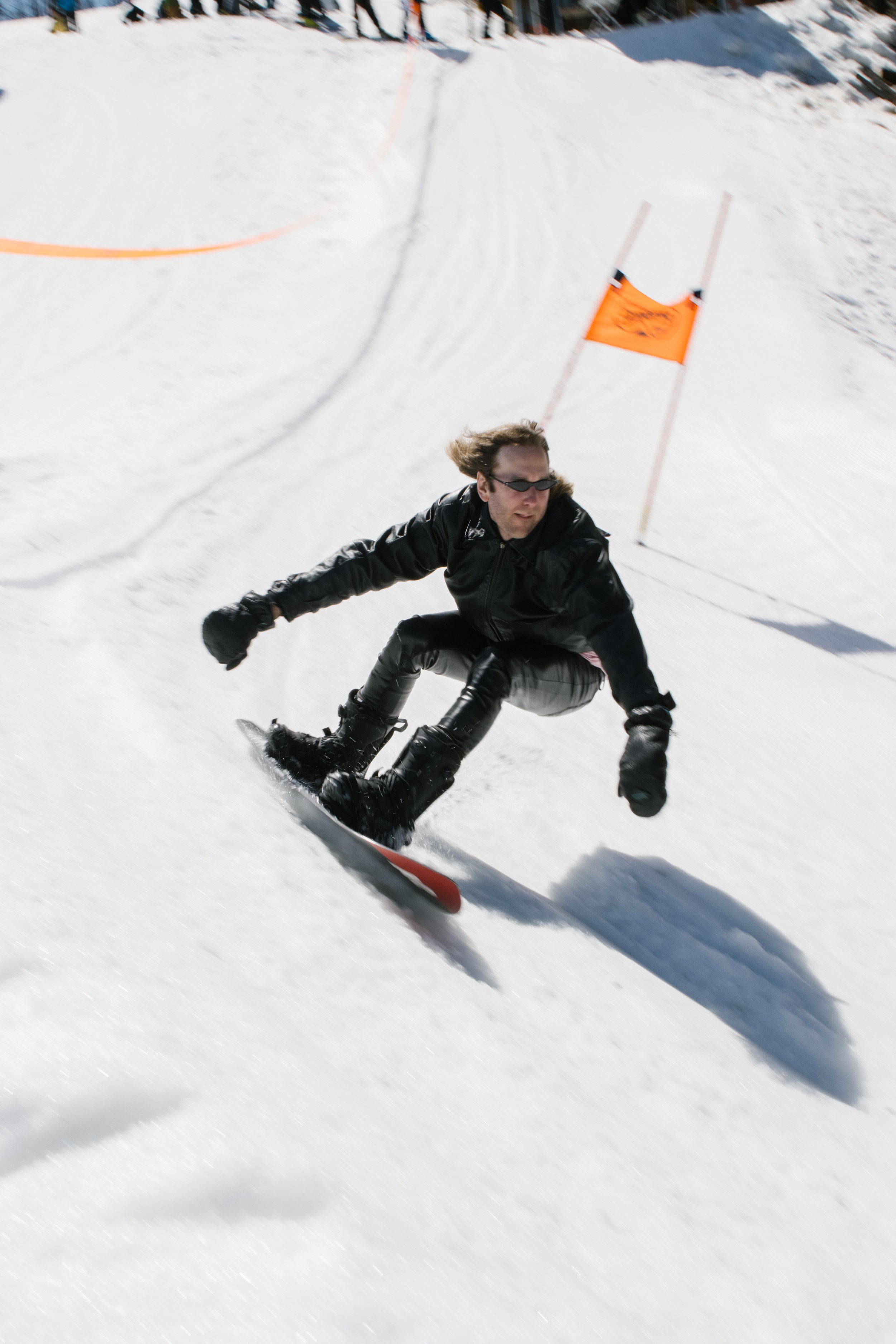 For those who haven't heard of it: a banked slalom is a timed race course carved into the snow, with a series of angled, banked turns you navigate as fast as you can on skis or a snowboard. It has deep roots in snowboard culture and the freeride community—technical, fun, and once you run it, you want to go again.
